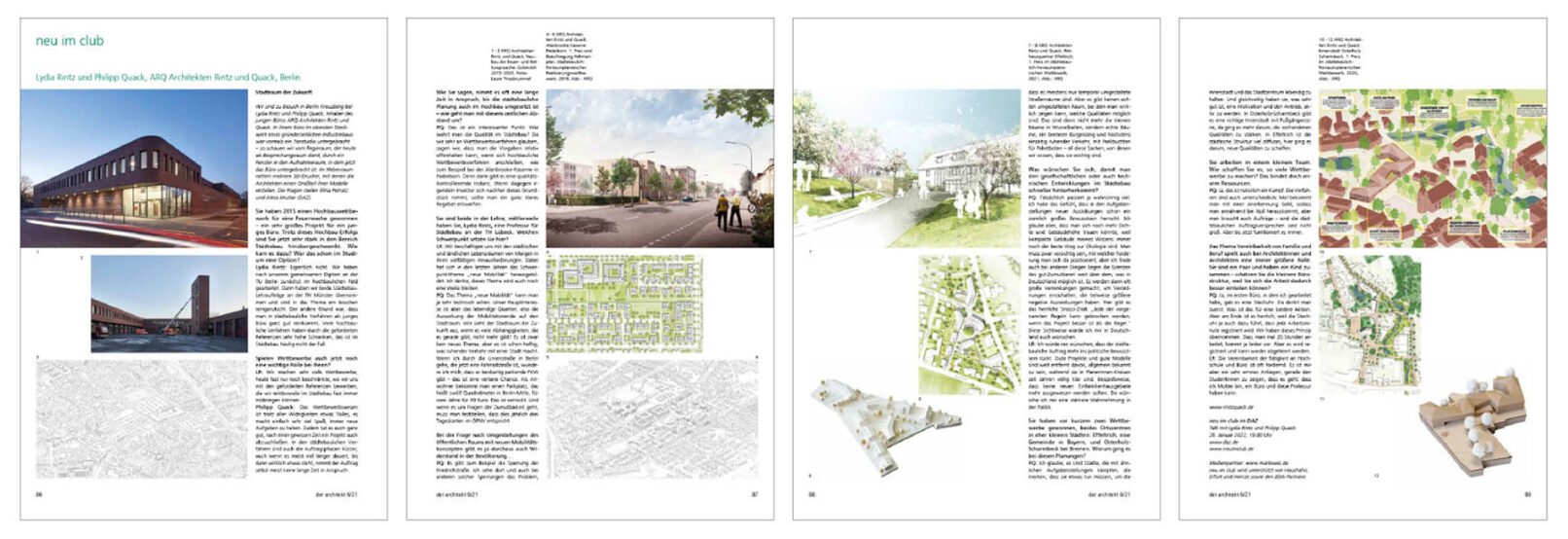 Unter dem Titel „Stadtraum der Zukunft“ ist in der Zeitschrift „Der Architekt“ in Ausgabe 6 / 2021 ein Interview mit Bürovorstellung über ARQ erschienen.
